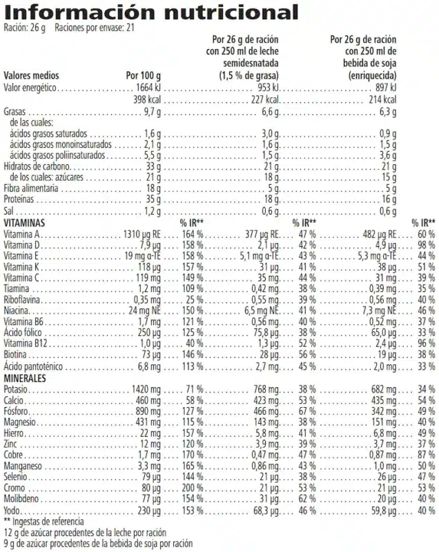 Cantidad Neta: 550 g – Raciones por envase: 21